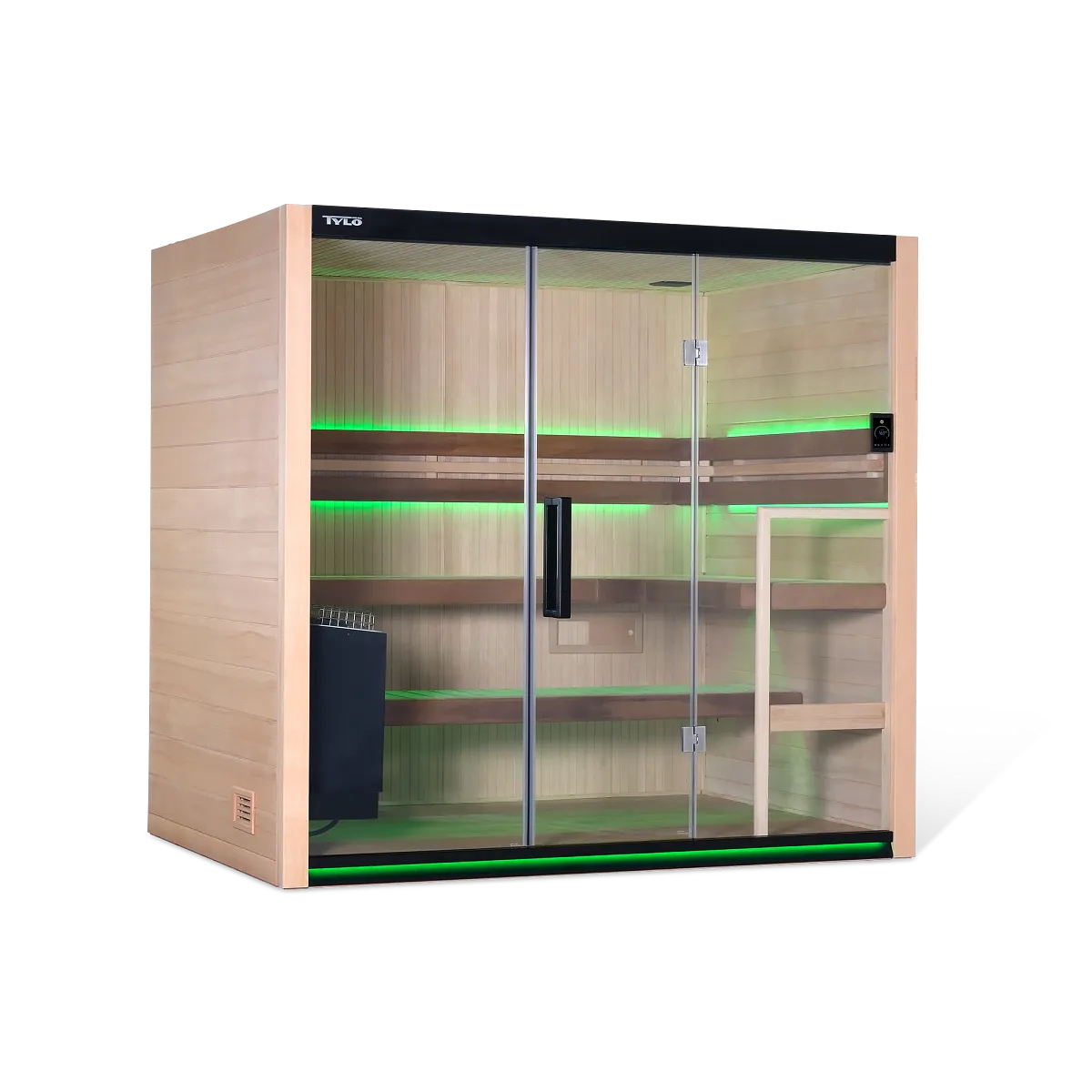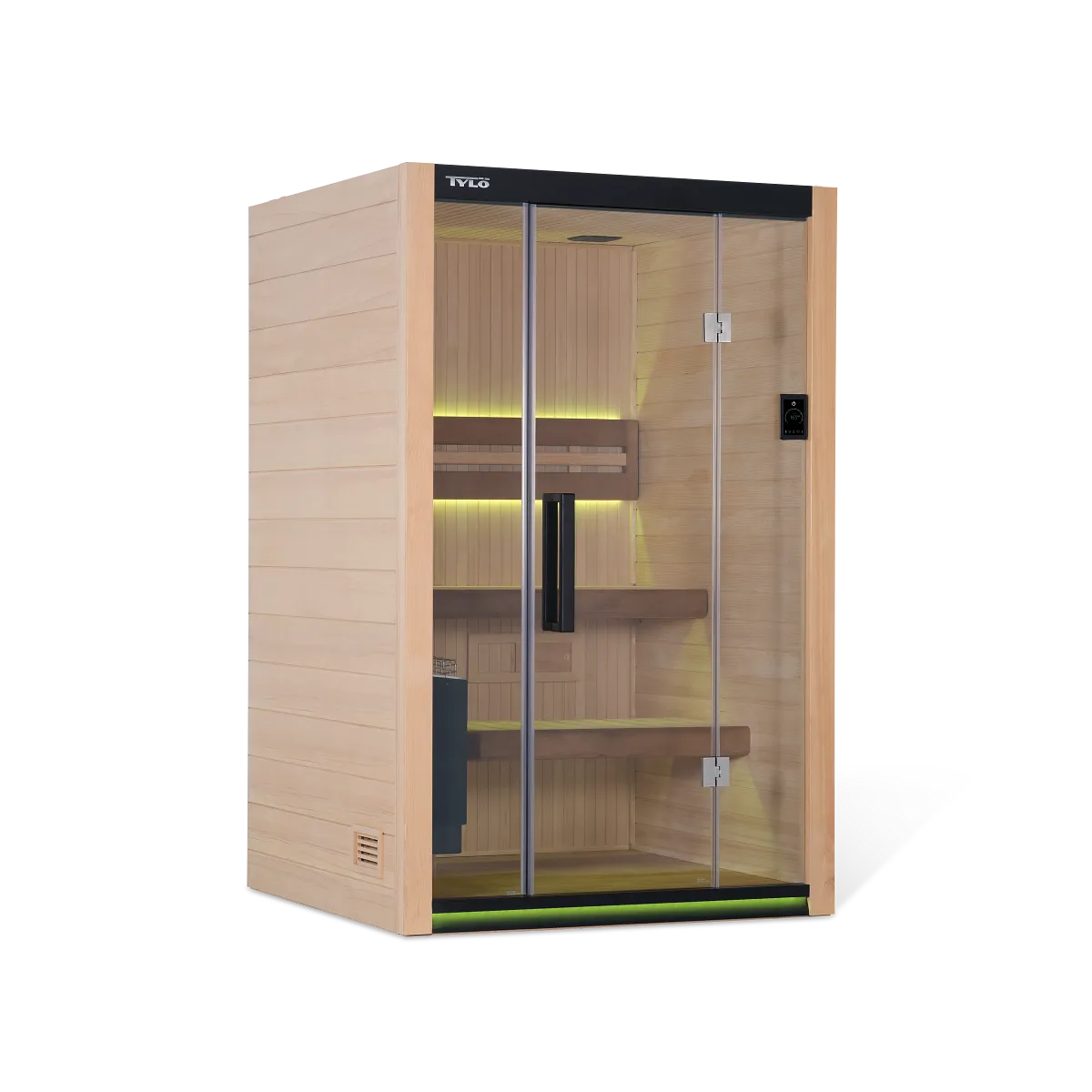 Easily manage temperature, session time, lighting, and sound using the Bliss™ touchscreen or the Tylo Sauna App.